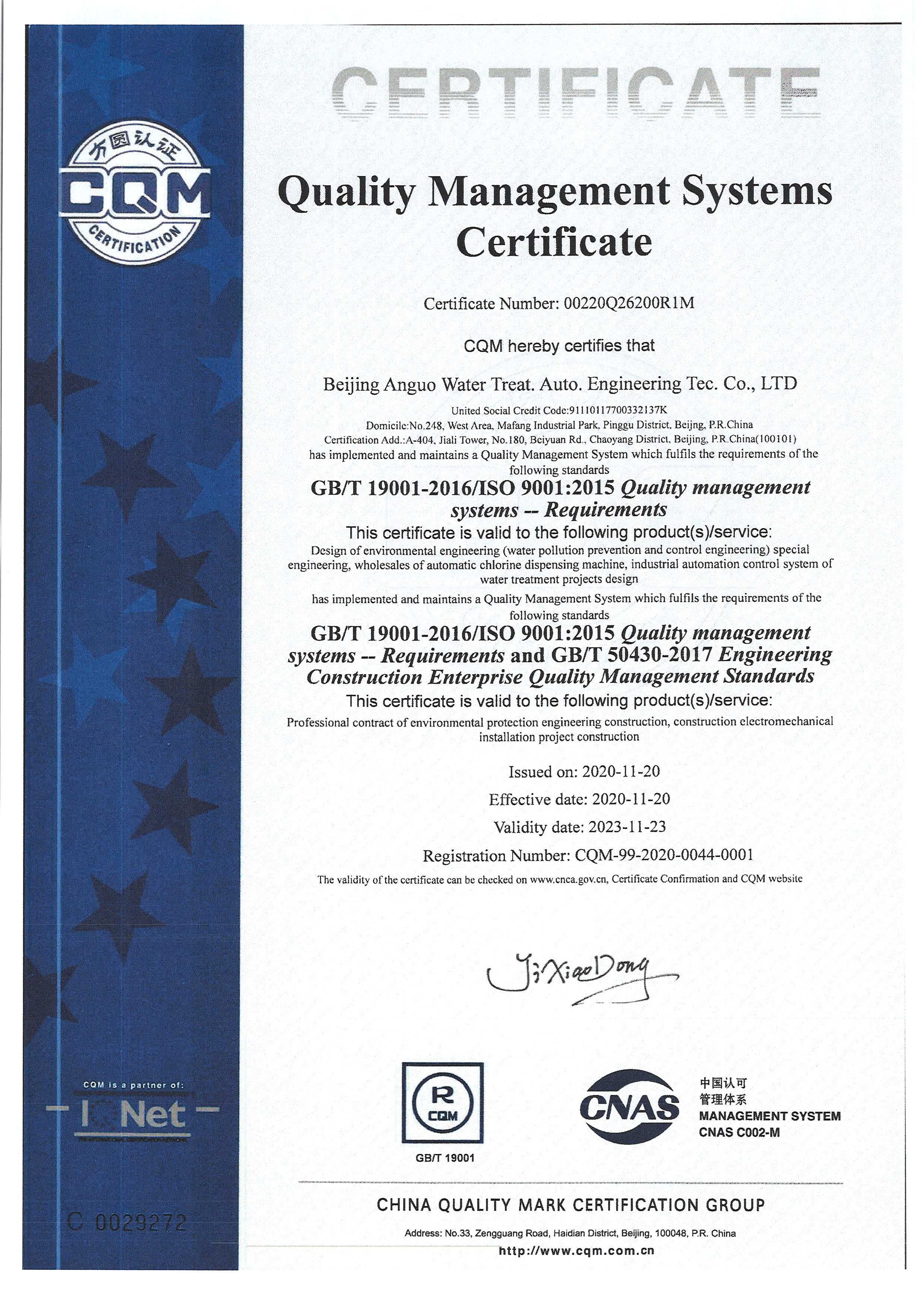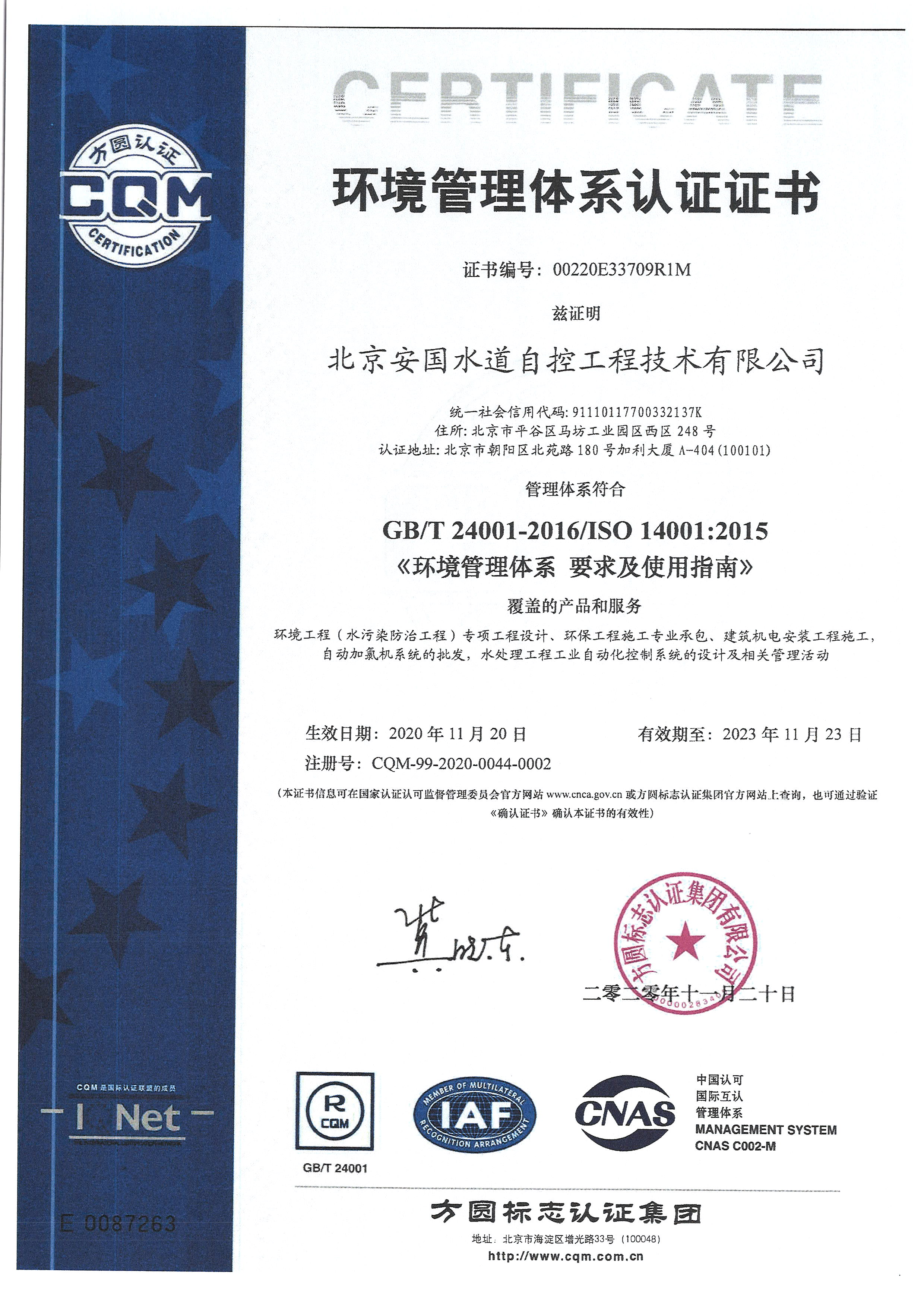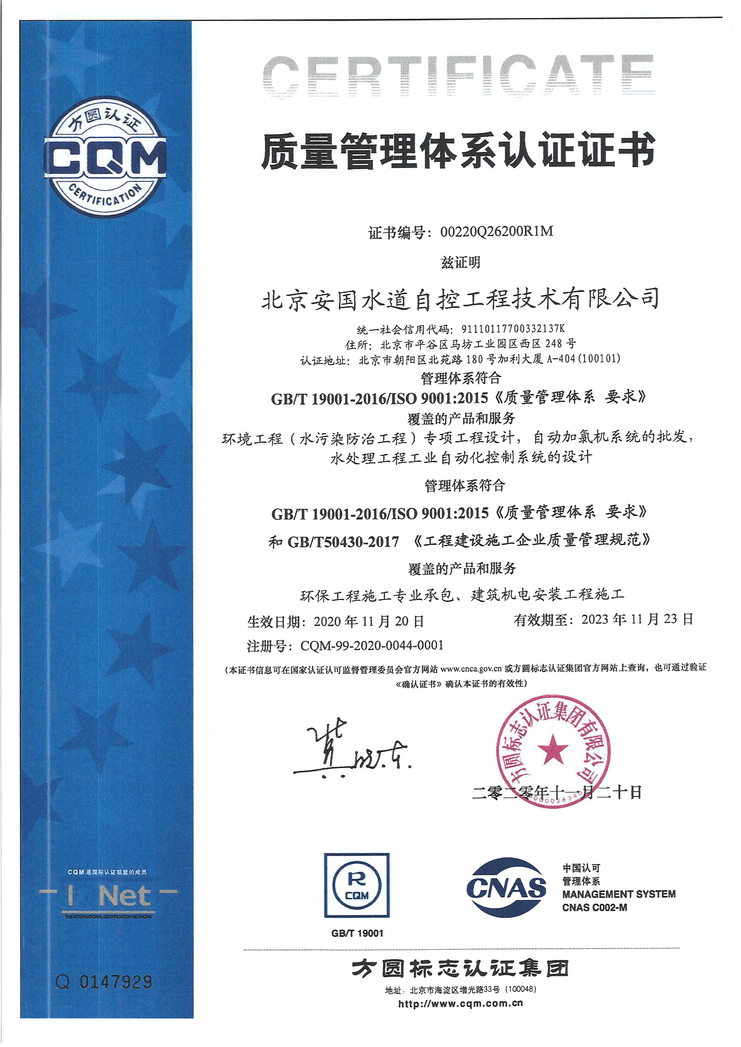 北京安國水道自控工程技術(shù)有限公司2015年入駐中國給水排水品牌委員會