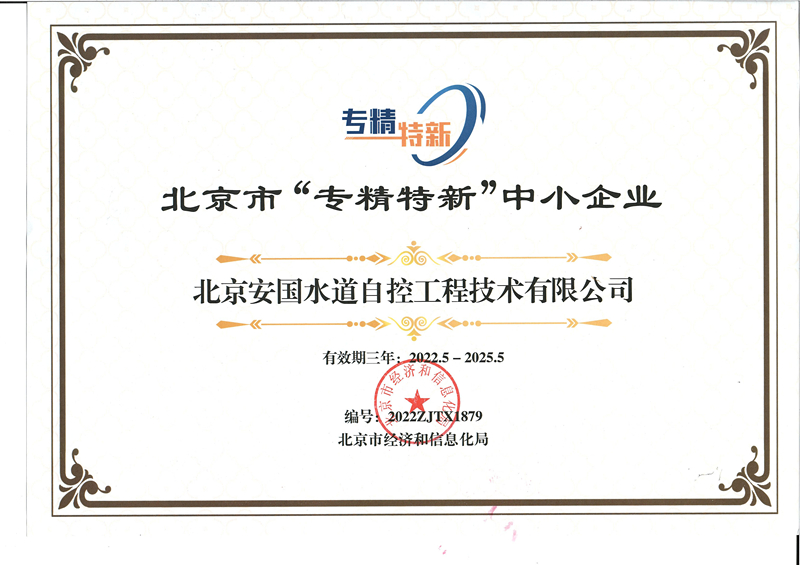 近日,北京市經(jīng)濟和信息化局對2022年度第三批北京市“專精特新”中小企業(yè)名單進行了公告,作為水處理行業(yè)領(lǐng)域的領(lǐng)航者,北京安國水道自控工程技術(shù)有限公司順利獲選,成為新一批北京市專精特新中小企業(yè)。 專精特新”是國家為鼓勵企業(yè)實現(xiàn)專業(yè)化運營、精細(xì)化產(chǎn)出、特色化工藝和新穎化產(chǎn)品四項發(fā)展而專門設(shè)立的榮譽獎項。該獎項從企業(yè)經(jīng)營收入、營業(yè)利潤、研發(fā)投入、創(chuàng)新能力、市場占用率、知識產(chǎn)權(quán)等多維度對企業(yè)進行全方位評估和專業(yè)審查,旨在培育出一批專注于細(xì)分市場、創(chuàng)新能力強、市場占有率高、掌握關(guān)鍵核心技術(shù)、質(zhì)量效益優(yōu)的企業(yè)。 專精特新的靈魂是創(chuàng)新,底蘊是科技實力。安國水道獲選此次北京市“專精特新”中小企業(yè)名單,是政府對安國水道創(chuàng)新能力、專業(yè)化、精細(xì)化程度、發(fā)展?jié)摿Φ臉O大肯定,未來安國水道將以助推高質(zhì)量發(fā)展為己任,進一步增強創(chuàng)新發(fā)展意識,加大研發(fā)投入,提高技術(shù)創(chuàng)新能力,發(fā)揮自身技術(shù)優(yōu)勢,不斷打造核心產(chǎn)品和品牌,持續(xù)走專業(yè)化、精細(xì)化、特色化的創(chuàng)新型發(fā)展之路。